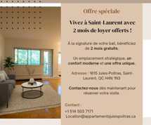 1615 Jules-Poitras 1615 Boul Jules-Poitras, Montréal, QC is a rental apartment building with 14 floorplans available. It is located in the Chameran neighborhood of Montréal. It has apartment amenities including on-site laundry. It has building amenities including concierge service, elevator, and on-site laundry. Cats are allowed, making it a pet-friendly building.
