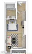 Studio Apartment – Smart, Stylish, and Efficient Living! Our studio apartments at Victory on Leonard offer a perfect balance of form and function in the heart of Grand Rapids’ West Side. These thoughtfully designed spaces feature high ceilings, recessed lighting, and large sliding glass doors that fill the unit with natural light and lead to a private balcony measuring 7 feet—ideal for relaxing outdoors. Each studio includes an in-unit washer and dryer, built-in cabinetry, and extended counter space that’s perfect for a dining nook, home office, or creative workspace. Clean lines, modern finishes, and a highly functional layout make this studio an ideal home base for busy professionals or minimalist living.