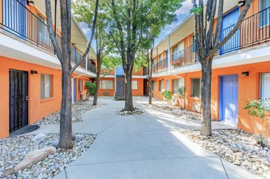 The French Quarter 1101 Palomas Dr Se, Albuquerque, NM is a rental apartment building with 12 floorplans available. It is located in the South San Pedro neighborhood of Albuquerque. It has apartment amenities including on-site laundry, assigned parking, in-unit laundry, balcony, air conditioning, and ceiling fan. It has building amenities including on-site laundry, controlled access, and outdoor space. Cats and dogs are allowed, making it a pet-friendly building.