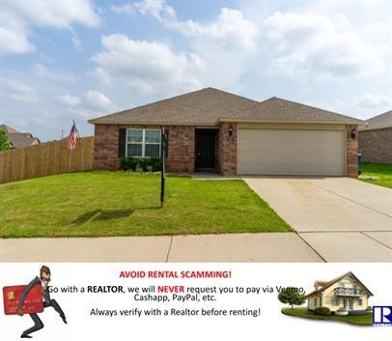 This bright, airy home has almost 1500 square feet of living space in a 3 bedroom floor plan with 2 full baths. Located in a quiet, beautiful neighborhood on the western edge of Lowell, the home is central to all the amenities of Northwest Arkansas with easy access to I-49. This well designed floorplan accomplishes a tremendous use of space, with a wrap around kitchen, spacious semi-formal dining area, and an open living area with cathedral ceilings. The kitchen features granite countertops and stainless steel appliances. Lots of natural light pours into these main areas. Outside, due to being on a large corner lot, there's plenty of room to play in the large, gently sloping backyard. Imagine yourself relaxing on the back patio, or in the master bedroom, featuring its own bathroom suite and walk-in closet. Come experience this bright, open, and comforting interior.