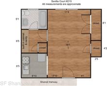 The apartment features loads of storage space for its size. Electric has been updated throughout, with a ceiling fan in the main room. The parquet wood flooring throughout the apartment is in good condition.