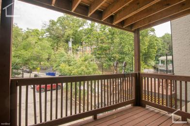 The condo features central air conditioning, two porches, and one enormous roof-deck balcony.
