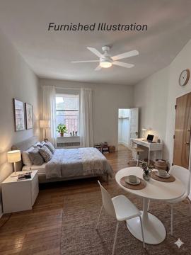 Nice Charles Village studio with hardwood flooring and ceiling fan with overhead lighting. Walk-in closet. Galley-style kitchen with brand new flooring and gas stove. W/D in building. Utilities not included in rent. Available now