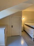 Large bedroom with shared full bathroom (1 other person) and other 1/2 bathrooms available. At 200 square feet, this bedroom is almost as big as some of the studios I've rented! Shared kitchenette, full kitchen and large outdoor common areas (front porch and outdoor patio). Room furnishing includes queen bed frame (you must supply the mattress) and built-in dressers. We're searching for a responsible roommate to join the other people in the house. Age ranges of current roommates are late 20s - late 40s. We all have full-time jobs but are open to an older grad student joining us as well. We all want to have a peaceful, relaxing space to call home! Please include a phone number and some information about yourself. Leasing Info: Credit and background check required - $40 background/credit check fee (payable straight to TransUnion) Month to month lease with 2 month's notice to vacate Sorry, no pets and no storage available $50 cleaning fee/month (Cleaners are brought in for all common areas) - we're all adults and realistically no one wants to clean bathrooms on their weekends! $15 for toilet paper, paper towels, dish soap, hand soap, etc. - one order/month through amazon for all of our convenience! Near the highway exits, MAX, bus lines, Fred Meyer, Trader Joe's. Very near both downtown and Northwest 23rd area. Please include your phone number and that you understand it's a bedroom for rent in any information requests.