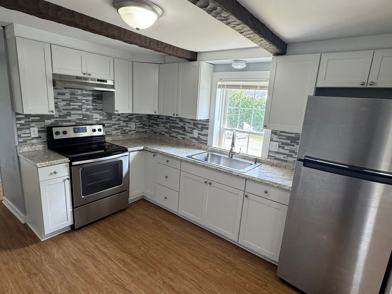 Move into this recently renovated 1-bedroom, 1-bathroom unit at Liberty Manor Apartments and enjoy modern finishes at an affordable price. This unit includes a stainless steel refrigerator and stove, vinyl plank flooring, and updated fixtures throughout. The common areas include a large well-maintained parking lot and a community picnic area. Coin-operated laundry machines are in the basement.