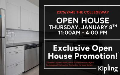 Open House Thursday, January 8th from 11:00am-4:00pm. Exclusive Open House Promotion!*
