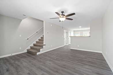 These townhomes features beautiful brick & vinyl construction in the front and back of each unit. Inside the open front room LVT flooring, fresh greige tone paint with white trim accents. There's an eat-in kitchen with a large pantry & laundry room with connections. Guest bath is located between the living room & kitchen area. Upstairs features new plush carpet bedrooms each with their own private full bath. Up to 2 pet are welcome, 40 Lbs. combined weight or less, pet fees and restrictions apply.