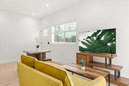 • An 841 sq ft 3 bedroom apartment that's fully furnished, has a living room with TV and dining room as common areas.