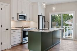 Welcome to Juniper Commons, a new 50-unit townhome pocket community in a great Portsmouth location. Abutting vast wooded conservation land, this beautifully landscaped community features three bedroom, three bath townhomes. The two-car garage entry leads into a finished first floor space ideal for an office, or mud/storage area. Up the hardwood stairs the living level is an inviting open layout with high ceilings, hardwood flooring, and great natural lighting. The spacious living and dining area opens to beautifully finished kitchens including cabinetry to the ceiling, pantry storage, oversized island, stainless appliances, and high end stone countertops. Sliding glass doors off the kitchen leads to a private deck space. The third floor has three bedrooms and two baths, including a primary suite with walk-in closet, and bath with tile shower and glass enclosure. Hardwood flooring throughout all bedrooms and living areas. Central air. Dogs and Cats allowed with management approval. Professionally landscaped community with community park, sidewalks, and trail leading to the lush wooded open space behind the homes for all to enjoy!