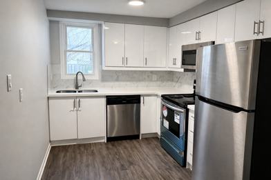 - A bright and newly renovated kitchen complete with plenty of beautiful cabinets for ample storage, all-white countertops, brand-new stove, brand-new stainless steel fridge PLUS a brand-new stainless steel dishwasher