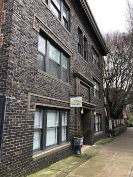 Sister to the Charlotte Rose Apartments is the Sara Ann. It was completed in the same year of 1927 but one will notice the differences in the details of the building on the exterior. It is uniquely clad in a dark brick and has a more elaborate façade in keeping with its Italianate style. This is a three story building comprised of spacious 1 bedrooms and studios.