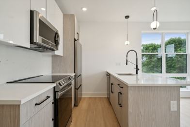 Spread out at 527 square feet, this has full-sized kitchen appliances, sleek kitchen, and bathroom tiling. Soft-closed cabinetry, warm-toned wide-plank flooring, and a bright white coat of paint to truly decorate it as your own.