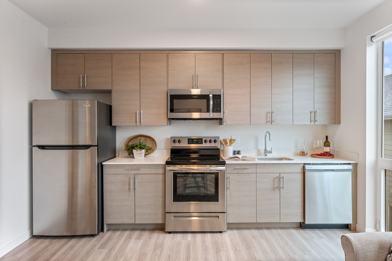 Welcome to modern living in the heart of Lents, Portland! Our apartments offer elegance and convenience with features like hard surface floors, large windows for natural light, high ceilings, stainless appliances, custom cabinetry, quartz countertops, and in-unit washer/dryer. These units also all feature built in AC ports for quick set up in the warmer seasons.