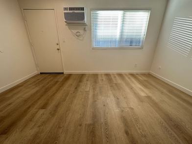 Updated freshly painted unit with brand new windows, window blinds, waterproof laminate throughout entire unit, AC/Heater unit. Full kitchen with brand new fridge & electric stove and includes garbage disposal. Full bathroom with beautiful new shower walls, shower door and vanity sink.