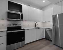 Each unit is expertly designed with high-end, stainless steel appliances, modern bathrooms, and sunlit living spaces. Outside your door, you’ll have access to incredible amenities. Break a sweat in the fitness center or make use of the relaxing massage chairs in the wellness room to unwind after a big day exploring the city. You might even feel inspired to try out some new hobbies by utilizing the podcast recording studio or golf simulator located in the recreational space. If you're working from home, the coworking area offers plenty of quiet space to focus, especially if you reserve a dedicated desk. The luxe community lounges also offer plenty of relaxing space to gather with your neighbors, host friends, or watch a movie in the screening room. For those warmer months, make sure to utilize either of the two stunning outdoor rooftop terraces where you'll find a peaceful retreat from big city life with views of the Midtown skyline.