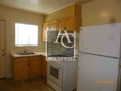 East Side / Live Oak Apartment. Kitchen includes refrigerator with top freezer and gas stove. carpet in living/bedroom.