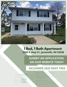 Introducing our newly remodeled One-Bedroom Upper Apartment in Janesville, WI. This cozy unit features all vinyl flooring throughout, making cleaning a breeze. Enjoy the convenience of off-street parking. This apartment provides just the right space for comfortable living with one bathroom. Don't miss out on this charming apartment in a great location.