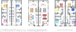 TCU housing at its best. There are 5 generous private bedrooms, each with a private bathroom and private coded door lock. The common floor features solid surface floors, a balcony, large open living area with flat screen TV, powder bath, and a kitchen your parents will envy. There are 2 bedrooms on the 1st floor and 3 on the 3rd floor with a set of washers and dryers on each floor – so no schlepping up and down the stairs to do your laundry. Parking is private, well lit, fenced, off street, and onsite.