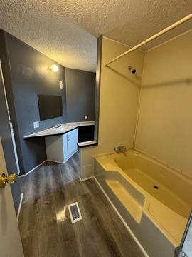 2 bedroom, 2 bath, single wide with hard surface flooring throughout. Home features open concept Living/dining/kitchen with kitchen island, smooth top electric range, dishwasher, fridge, walk in laundry and pantry combo. Master bedroom with on suite bath is on opposite end of trailer from second bedroom and hall bath. Home is all electric. Garbage, water, and pest control is provided by owner. No Pets.