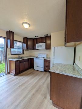 Welcome to Jenkins Duplexes, a beautiful 2-bedroom, 1-bathroom duplex located in Beaverton, OR. This single-level, duplex-style home is ready for move-in late November and boasts a large living area with wood flooring and large windows that let in plenty of natural light. The kitchen is equipped with a microwave and abundant cabinet space, perfect for those who love to cook.