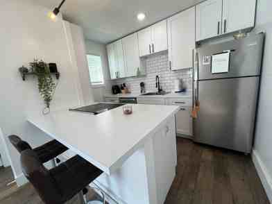 This renovated one bedroom/one bath apartment has beautiful light wood laminate floors, white shaker kitchen cabinets, stainless steel refrigerator, slide-in glass topped stove, microwave and dishwasher. The bathroom has LVF flooring, vanity/sink, LED lighting, and large tri-paneled medicine cabinet. Unit also comes with 2 closets (1 walk-in), an in-unit washer/dryer, as well ceiling fans. Unit also has energy efficient vinyl windows, along with white 2" cordless window blinds. Apartment comes with a small private fenced backyard and a dedicated onsite parking space. There is plenty of on-street guest parking available out front. Pets are welcome with a non-refundable pet fee and monthly pet rent (amounts determined by size/breed). Electric & water are separately metered; garbage and pest control are an additional $10/month. There is a $35.00 application/background check fee which is used to run a credit/criminal background check, income verification of 3x the monthly rent and rental history verification. Upon approval, the security deposit of 1 month of rent is immediately payable to reserve the unit. Upon lease signing, the 1st month's rent is payable. 7 - 12 month leases options available. If interested, please call or text Glenn Katz @ (904) 923-9300 or send an email to ****.