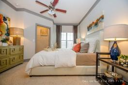 4689 Mustang Pkwy #109738-768, Carrollton, TX is a 1 bedroom, 1 bathroom apartment for rent. It is located in the Northeast Carrollton neighborhood of Carrollton. It has apartment amenities including central heat, hardwood floor, on-site laundry, assigned parking, ceiling fan, dishwasher, deck, walk-in closets, air conditioning, and high ceilings. Cats and dogs are allowed, making it a pet-friendly apartment.
