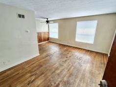 Inside, you'll find a large living room with hardwood flooring, plenty of natural light, and a comfortable layout perfect for everyday living. The kitchen features ample cabinet space, a small pantry, and comes equipped with a refrigerator and stove.