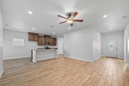 Ceiling fans and decorative lighting add charm and comfort throughout the living areas. Natural light pours in from multiple directions, filling the home with warmth and a bright, welcoming atmosphere.