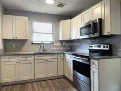 Schedule your tour today to explore this inviting 3 bedroom, 1.5 bath home featuring a beautiful backyard deck with a pergola. Step inside to discover vinyl plank flooring spanning the home. French doors open into the spacious dining room, creating an elegant transition that adds character and charm to the living space. The kitchen showcases white shaker cabinetry paired with a decorative tile backsplash and granite countertops for a stylish design. Stainless steel appliances, including an over-the-range microwave, while a pantry provides additional storage. Ceiling fans are thoughtfully placed throughout the home to assist in circulating the cool air, and blinds are installed on many windows for added privacy. A dedicated laundry room offers washer and dryer hookups along with extra storage space to help keep everything organized. Step outside to enjoy the fenced backyard complete with a shaded patio area and a deck topped with a pergola, creating a comfortable outdoor retreat. Two parking spaces are available for added convenience. Residents are responsible for all utilities, lawn care, and are required to maintain active renter’s insurance throughout the lease term. Pets are welcome, breed and weight restrictions may apply. Application fee $55 per person 18 and over. Lease Term: 12 months.