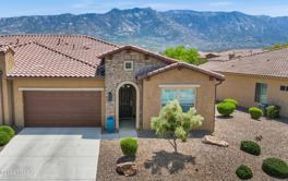 Not Available for Rent 1/1/2026-4/30/2026. Furnished 2019 Viva model villa in SaddleBrooke Unit 50. This 2 Bedroom + Den / 2 Bathroom / 1,650 SF / 2 Car Garage Villa with Catalina Mountain Views is just the rental you've been looking for! Sleeps four with Owner's Suite with King bed & Guest Bedroom with a Queen bed. Den/Office with double doors for privacy. Open Floor Plan living space. Upgraded Kitchen with Quartz Counters, Gas Range & Slate Appliances. Great Room with spacious area for reading or watching tv & dining area with slider to patio. Laundry Room & Storage. Covered patio with pavers & mountain views. Included: Cable TV and high speed internet, all utilities & use of SaddleBrooke amenities (3 Fitness Centers & 6 Pools). Just bring your clothes & toothbrushes!