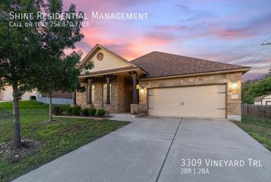 Welcome to your dream home in Harker Heights, TX. This stunning 3-bedroom, 2-bathroom house is a perfect blend of style and comfort. The home features a cozy fireplace, a well-equipped pantry, and ceiling fans for those warm Texas days. The vaulted ceilings add a touch of elegance, while the window coverings and walk-in closets provide practicality. The kitchen is a chef's dream with a stainless microwave vent hood, dishwasher, side by side refrigerator with water and ice in the door, and wall-mounted dual ovens. The island and countertops are adorned with beautiful granite, and the recessed lighting creates a warm ambiance. The flooring is a tasteful mix of wood, carpet, and tile. The master bathroom is a sanctuary with a garden tub, separate shower, and a dual vanity with a granite countertop. The house also boasts a central heat/air system, a 2-car garage with an opener, and a wood privacy fenced yard. The grand entry, arched hallway headers, and covered front and back porches add to the home's charm. This house is not just a place to live, it's a lifestyle.