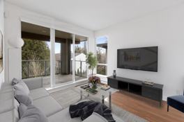 This bright, modern, and spacious 1-bedroom + den offers the perfect blend of convenience and privacy. Enjoy a unique layout with a street-level front door. The massive patio sits on the 3rd floor, overlooking a peaceful green space — the building is built on a hill.