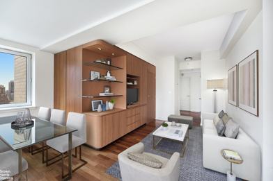 Perched high above the city on the 31st floor, with sweeping views from double exposures, this sunny two bedroom home is a rare treat. Perfect for entertaining, the living room leads to a proper dining area surrounded by walls of windows, where you can dine under the city skyline! The modern, windowed kitchen features stainless steel appliances, granite countertops and cherry wood cabinetry. The king-sized master bedroom has ample closet space and light. The second bedroom/office is also comfortably sized with good storage. Gleaming hardwood floors, custom built-ins throughout, and a renovated bathroom with standing shower and separate tub complete this wonderful home. 425 Fifth Avenue is a full service condominium and the building is just as impressive as the apartment, with amenities consisting of a 24 hour doorman, state-of-the-art fitness center, lap pool, sauna, playroom, elegant residents' lounge and a large terrace where you can watch the parades stroll down Fifth Avenue. Conveniently located right in the heart of Manhattan, close to all transportation, Bryant Park, shopping, restaurants, Whole Foods and historic sights, this home offers a special opportunity to experience all that the city has to offer, while living in the lap of luxury! No pets please and available for mid-June to early July occupancy. Shown by appointment.