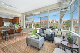 Light abounds from this spacious style at the sought after Terrace. Unit features a large open kitchen with Stainless steel appliances and granite countertops, hardwood floors in the main living spaces and plush carpeting in the bedroom. In unit washer and dryer and parking for one car in the garage.