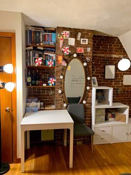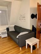 In the bedroom only a full size bed can fit. Beautiful exposed brick, front facing unit.. tons of sunlight