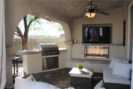 SOLAR powered! Exquisitely furnished luxury rental in a guard-gated, exclusive community. Entertainer’s dream home with breathtaking views of the Serket (Rio Secco) golf course and city lights from an oversized, elevated premium lot. Modern, updated interiors throughout. Gourmet chef’s kitchen with large granite island, upgraded stainless steel appliances, and designer finishes. Formal dining for 12-14, pool table w/ping pong top, gigantic outdoor chess set, home gym, movie & game room, and private movie theater with Bose surround sound, oversized screen, and balcony overlooking the golf course. Resort-style backyard oasis featuring heated pool and spa, outdoor TV, fireplace, built-in BBQ, hammock, firepit lounge, curtained cabana, garden, and dog run. Front & rear balconies, professionally designed landscaping, infrared dry sauna, and EV-ready 220V charging outlet. Top-rated schools. Walking distance to parks, shopping, grocery, and dining. Approx. 15 min to airport, 20 min to Strip