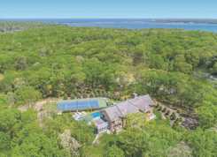 Rental Registration # 26-338. This newly constructed custom home offers resort-style amenities. Light-filled open living areas all have walls of glass opening to the grounds for indoor-outdoor living. These include a living room with fireplace, sunroom, formal dining area, and eat-in kitchen featuring island with seating, top-grade stainless steel appliances including wood-paneled Sub-Zero refrigerator/freezer and separate Sub-Zero refrigerator drawers, Wolf range, Italian-inspired custom cabinetry and breakfast area with expansive banquette. The six exquisite bedrooms and six and a half baths include three master suites incorporating features such as multiple fireplaces, sitting room, huge walk-in closets, luxurious baths and private roof terraces perched over the beautifully landscaped grounds. Pick your favorite spot and relax in the sun-drenched open living room or sunroom,or sit quietly with a good book behind 8' tall glass doors in the library. The finished lower level includes huge recreation areas with two fireplaces, glass-partitioned office or gym area, a bedroom and bath with private separate entrance, and a laundry room. The thoughtfully landscaped grounds provide a lovely and private setting for the heated gunite pool and bluestone patio with ample room for outdoor dining and lounging. Steps away, a private, all-weather tennis court with Pickleball net & lines. This masterfully designed home is located in a private upscale neighborhood a short way across the street from one of the prettiest bodies of water in the Hamptons. Listing ID 861722.