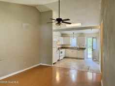 Cozy, all-electric unit with laminate & vinyl flooring, fresh paint and a new door. Living room features vaulted ceilings. Kitchen comes with stove, refrigerator, dishwasher, and microwave; washer/dryer hookups in kitchen. Utilities through City of New Bern. Pets negotiable with approval.