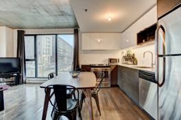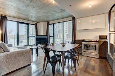 Emplacement idéale plein de lumière naturelle, unité de coin avec 2 Chambres, 1 garage, 1 rangement, électro inclus. Piscine intérieure, Salles multi fonctionnelles (TV, réunions, détente), Gym, Terrasse sur le toit avec une belle vue du centre-ville de Montréal.