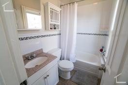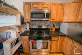 -Renovated kitchen with stainless steel appliances, full sized gas stove, microwave