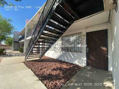 386 57th St Nw #1, Albuquerque, NM is a 1 bedroom, 1 bathroom apartment for rent. It is located in the West Mesa neighborhood of Albuquerque. It has apartment amenities including on-site laundry. Dogs are allowed, making it a pet-friendly apartment.