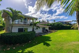 This classic Hawaiian home boasts a generous 2,750 square feet of living space on a sprawling 16,464-square-foot lot. The open living area features cozy seating and large windows, inviting natural light and stunning ocean views. The fully equipped kitchen offers everything you need to prepare meals, while the dining table comfortably seats six for shared gatherings.