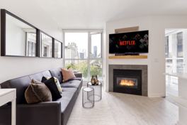 This bright and modern furnished apartment is ideally located at The Canadian at Wall Centre on 1068 Hornby Street in the heart of Downtown Vancouver. Close to Vancouver Skytrain Station, Robson Street, Pacific Centre Mall, Vancouver Art Gallery, Scotia Bank Theatre, St. Paul's Hospital, YMCA, shopping, restaurants and hotels. Walking distance to Yaletown, Stanley Park, seawall and beaches.