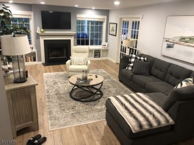 Oversized one-bedroom condo w/transitional decor and high-end finishes. Viking cooktop and oven. Kitchen has subway tile backsplash, granite countertops, tile floor, dishwasher and in-unit washer/dryer. Large deck overlooking the Passaic River and 1 car garage with entry into unit. Wood fireplace/built-in bookcases. Bath w/shower AND tub/shower combo. Double vanity with granite countertops. Custom primary closet and additional closets with ample space. Pool/tennis in park-like setting. NO PETS. Gas/charcoal grills are NOT permitted - electric grill only. Photos are from a prior tenant. PLEASE LOCK PORCH DOOR AND ENTRANCE DOOR AND TURN OFF LIGHTS.