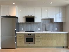 Energy-efficient LED lighting, Modern cabinetry with lacquer and wood finishes Kitchen Soft-close drawers and custom hardware, polished quartz