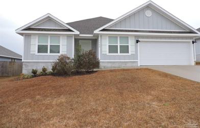 Convenient to I-10, shopping & Navy Federal complex! Spacious 5 bedroom home in the Preserve at Deer Run. Wood-look vinyl flooring throughout house except for bedrooms which are carpet. Great room with recessed lighting. Living/dining combination. Fully equipped kitchen with granite countertops, stainless appliances, pantry & island with breakfast bar. The split master suite features recessed lights, double vanity with granite countertops, separate shower & walk-in closet. Inside laundry with washer & dryer - "as is - no warranty". Covered back porch overlooks large privacy fenced backyard. The subdivision features a community pool. Small pet considered with owner approval. **Reduced deposit for active duty military - call for details!!**