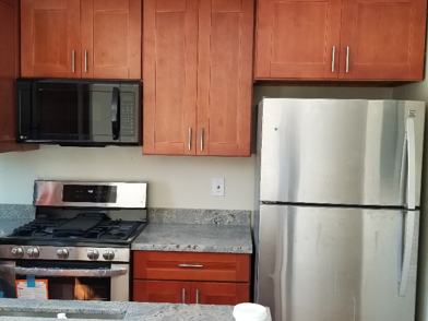New kitchen appliances, fully remodeled bathrooms, new hardwood floors in entire unit, new doors, new double pane windows and fresh paint in entire apartment. Private backyard/patio which opens to carport area. The kitchen is fully remodeled with Italian granite counters, new cabinets, 35" Samsung refrigerator, new dishwasher, LG microwave and LG gas stove.