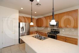 Available Now! 2,182 Sq Ft! 4 bedroom, 2 bath home in Casa Grande’s Mission Royale! Desirable single story floor plan. Gorgeous eat-in kitchen with included appliances, & expansive center island/breakfast bar! Breakfast nook + formal dining space. Kitchen opens to spacious family room, great for entertaining! Neutral interior with tile flooring throughout. Split bedroom floor plan offers 4 generously sized bedrooms + flexible den space! Den makes great home office/bonus room. Primary suite with full bath + walk-in closet! Secondary bedrooms each with optimal privacy. Blinds + ceiling fans! Laundry room with included washer/dryer. Enjoy a low up keep backyard with covered patio, & extended pavers! 3 car garage. Mission Royale is a desirable community offering community pool, playgrounds, sports courts, & biking/walking trails! Great Casa Grande location with easy I-10 access.