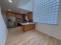 - Full chef's kitchen with stainless steel appliances and peninsula seating