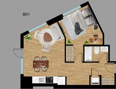 - 1 Bedroom units range from 603 sq ft - 878 sq ft